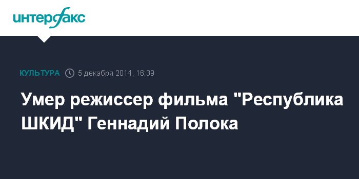 Москва. 5 декабря. INTERFAX.RU - На 85-ом году жизни скончался кинорежиссер Геннадий Полока, сообщает пресс-служба Союза кинематографистов России.