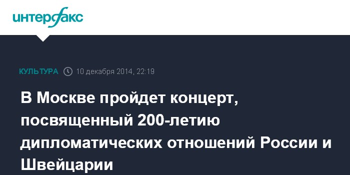 В Москве пройдет концерт, посвященный 200-летию дипломатических отношений России и Швейцарии