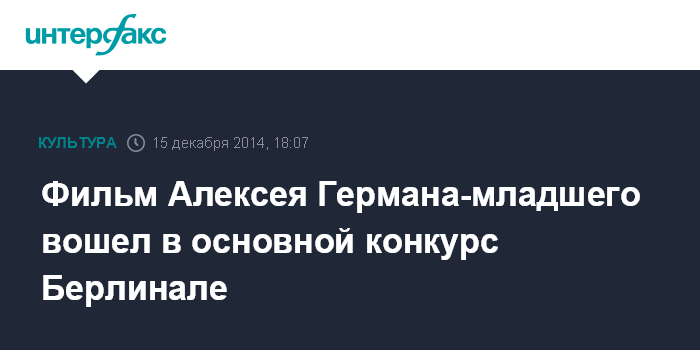 Часть конкурсной программы Берлинале объявлена в понедельник. Кроме фильма Германа-младшего в соревновании будут участвовать новые картины Терренса Малика, Питера Гринуэя, Кеннета Брана.
