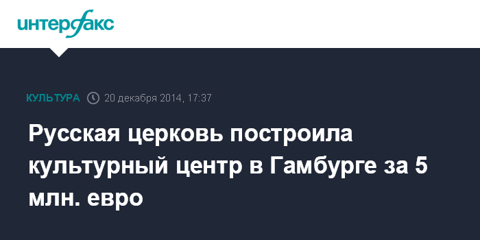 Москва. 20 декабря. INTERFAX.RU - В Гамбурге состоялось освящение и открытие нового культурного и образовательного центра Русской православной церкви.