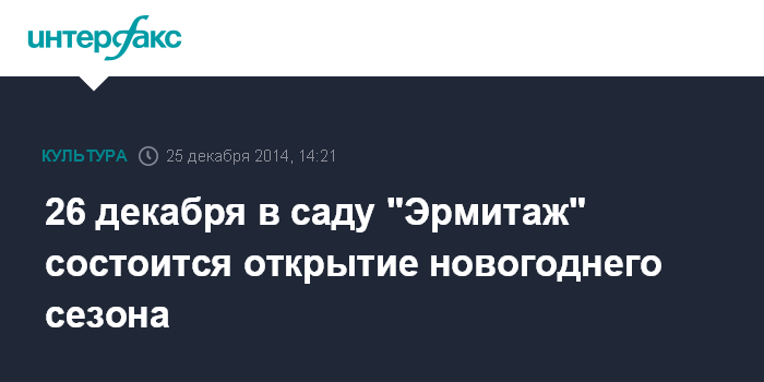 Москва. 25 декабря. INTERFAX.RU - 26 декабря в саду "Эрмитаж" состоится открытие новогоднего сезона, темой которого станет искусство.