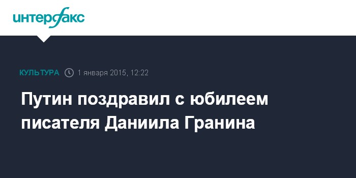 Москва. 1 января. INTERFAX.RU - Президент России Владимир Путин поздравил писателя Даниила Гранина с юбилеем, сообщила пресс-служба Кремля.