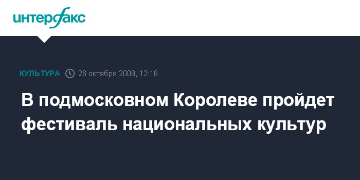 Королев (Подмосковье). 26 октября. INTERFAX.RU - Представители многих национальностей, живущих в России, станут участниками областного фестиваля национальных культур, который пройдет в подмосковном Королеве в начале ноября и будет посвящен 70-летию города и Дню народного единства, сообщили "Интерфаксу" в администрации Королева.