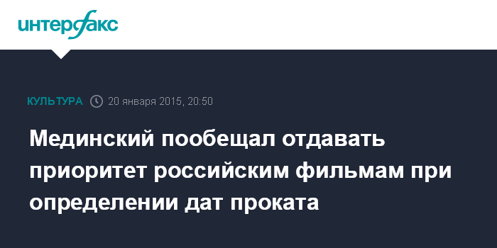 Мединский пообещал отдавать приоритет российским фильмам при определении дат проката
