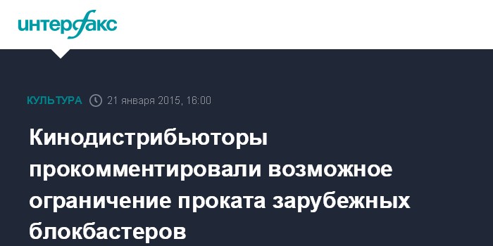 Москва. 21 января. INTERFAX.RU - Российские кинодистрибьюторы прокомментировали инициативу Министерства культуры РФ влиять на репертуар кинотеатров путем установки дат выхода в прокат зарубежных фильмов.