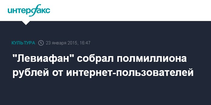"Левиафан" собрал полмиллиона рублей от интернет-пользователей