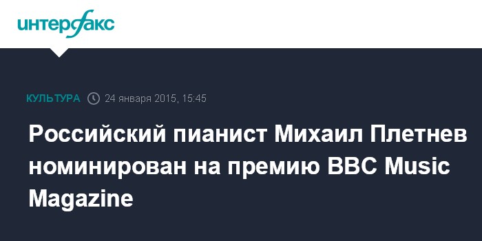 Москва. 24 января. INTERFAX.RU - Британское издание BBC Music Magazine обнародовало список финалистов ежегодной премии BBC Music Magazine Awards, присуждаемой за лучшие работы в области звукозаписи.