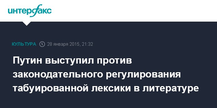 Путин выступил против законодательного регулирования табуированной лексики в литературе