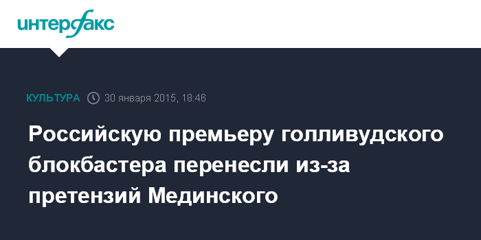 Российскую премьеру голливудского блокбастера перенесли из-за претензий Мединского
