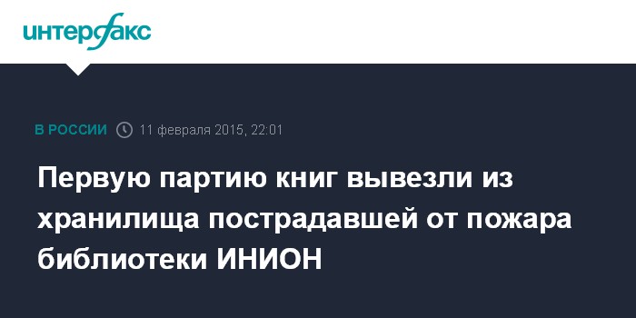 Москва. 11 февраля. INTERFAX.RU - Сотрудники Института научной информации по общественным наукам (ИНИОН) РАН приступили к перевозке книг из пострадавшего от пожара здания, сообщает пресс-служба института.
