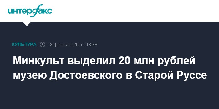 Минкульт выделил 20 млн рублей музею Достоевского в Старой Руссе