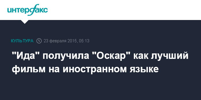 Москва. 23 февраля. INTERFAX.RU - Польский фильм "Ида" Павела Павликовского признан лучшим фильмом на иностранном языке.