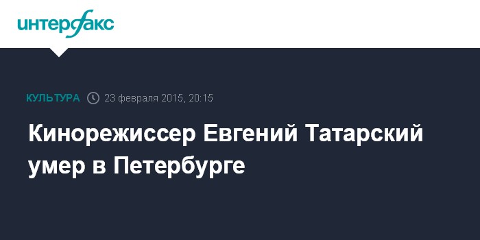 Москва. 23 февраля. INTERFAX.RU - В Петербурге в понедельник на 77-м году жизни скончался режиссер и сценарист, народный артист РФ Евгений Татарский, сообщили "Интерфаксу" на "Ленфильме".