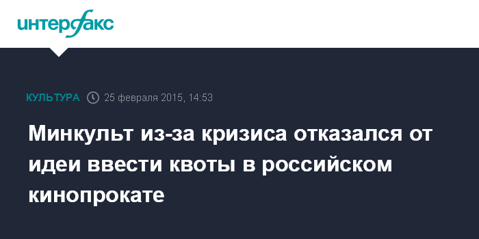 Минкульт из-за кризиса отказался от идеи ввести квоты в российском кинопрокате