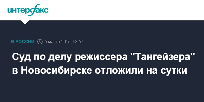 Москва. 5 марта. INTERFAX.RU - Мировой суд Центрального района Новосибирска перенес на пятницу рассмотрение административного дела в отношении режиссера-постановщика оперы Вагнера "Тангейзер" в Новосибирском театре оперы и балета Тимофея Кулябина, обвиняемого в осквернении чувств верующих.