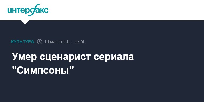 Москва. 10 марта. INTERFAX.RU - Сценарист и продюсер сериала "Симпсоны" Сэм Саймон умер в Лос-Анджелесе в возрасте 59 лет, сообщил The Hollywood Reporter.