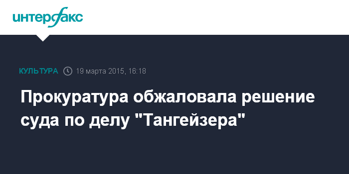 Прокуратура обжаловала решение суда по делу "Тангейзера"
