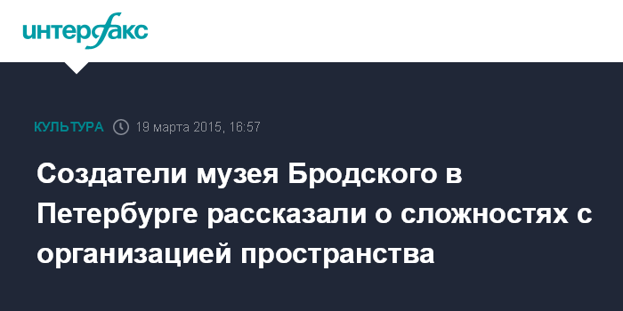 Москва. 19 марта. INTERFAX.RU - Создатели музея-квартиры поэта Иосифа Бродского в Петербурге столкнулись с организационными сложностями. Об этом сообщила Нина Попова, директор музея Анны Ахматовой, сотрудники которого готовят экспозицию в музее Бродского.
