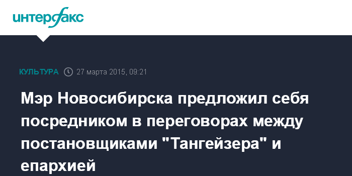 Москва. 27 марта. INTERFAX.RU - Мэр Новосибирска Анатолий Локоть считает, что для проведения переговоров между представителями православной церкви и Новосибирского театра оперы и балета по поводу оперы "Тангейзер" может потребоваться посредник.