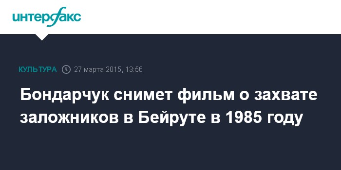 Москва. 27 марта. INTERFAX.RU - Федор Бондарчук снимет фильм о захвате советских заложников в Бейруте в 1985 году.