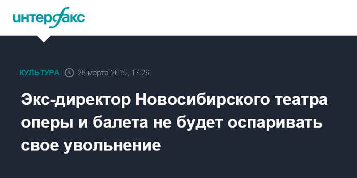 Москва. 29 марта. INTERFAX.RU - Бывший директор Новосибирского театра оперы и балета Борис Мездрич заявляет, что не будет оспаривать свое увольнение.
