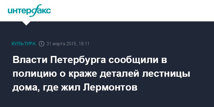 Власти Петербурга сообщили в полицию о краже деталей лестницы дома, где жил Лермонтов