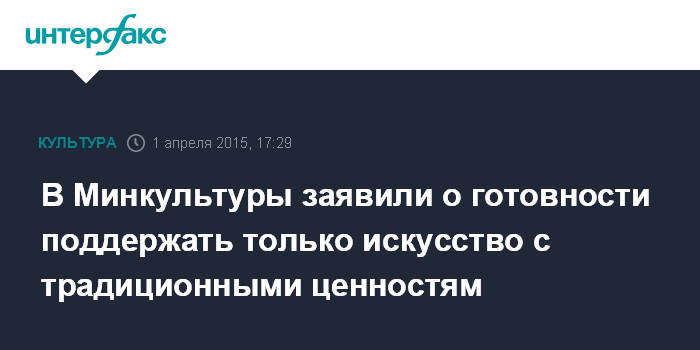 В Минкультуры заявили о готовности поддержать только искусство с традиционными ценностям