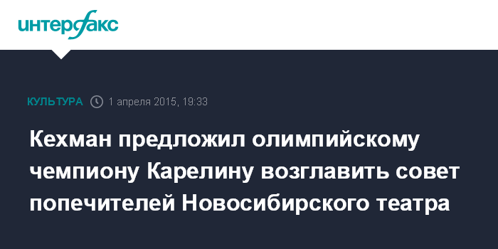 Москва. 1 апреля. INTERFAX.RU - Трехкратный олимпийский чемпион Александр Карелин может возглавить попечительский совет Новосибирского театра оперы и балета, сообщил директор театра Владимир Кехман.