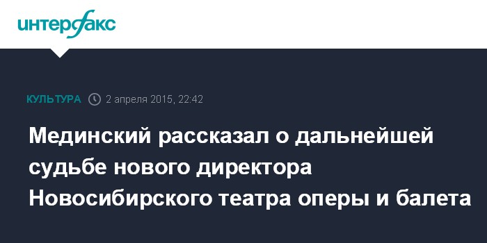 Мединский рассказал о дальнейшей судьбе нового директора Новосибирского театра оперы и балета