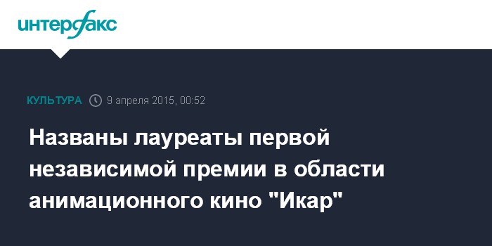 Москва. 9 апреля. INTERFAX.RU - Первая независимая премия в области анимационного кино - "Икар" - была вручена в среду в Москве.