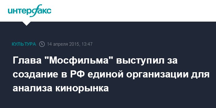 Москва. 14 апреля. INTERFAX.RU - Глава киноконцерна "Мосфильм" Карен Шахназаров считает, что в России для анализа рынка кино необходимо создать единый кинематографический центр по аналогии с советским Госкино.