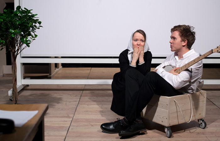 "Камеру Обскура", поставленную в Александринском театре в Петербурге, можно назвать спектаклем-инсталляцией, не случайно ее также выдвинули на премию в номинации "лучшая работа художника". Сцена заставлена множеством предметов, среди которых, кроме шкафа, стола и стульев, огромная кровать, странный станок и рыцарские доспехи. Вещи не просто составляют условный интерьер, они играют в спектакле, так же как и двое находящихся среди них актеров. В то же время сами артисты кажутся рабочими сцены – они не декламируют и ничего не изображают, но крутят ручки, включают музыку, переносят и переставляют. Эта "Камера Обскура", казалось бы, имеет мало общего с первоисточником Набокова. Но за всей изобретательностью и замысловатостью спектакля четко проступает тезис о механистичности жизни и отчуждении – очень набоковское чувство.