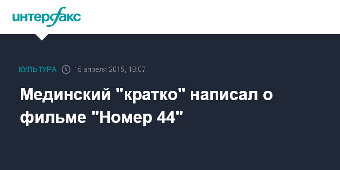 Москва. 15 апреля. INTERFAX.RU - Министерство культуры опубликовало комментарий главы ведомства Владимира Мединского по поводу отзыва прокатной заявки американского фильма о расследовании массового убийстве детей в сталинскую эпоху "Номер 44".