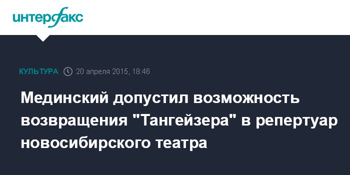 Москва. 20 апреля. INTERFAX.RU - Министр культуры Владимир Мединский считает, что решение о возвращении на сцену оперы "Тангейзер" должен принимать руководитель Новосибирского театра.