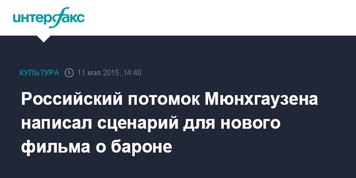 Российский потомок Мюнхгаузена написал сценарий для нового фильма о бароне
