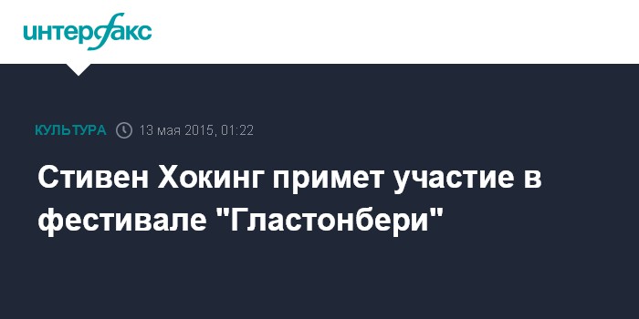 Москва. 13 мая. INTERFAX.RU - Всемирно известный физик-теоретик Стивен Хокинг примет участие в фестивале исполнительского искусства "Гластонбери", сообщила газета The Independent.