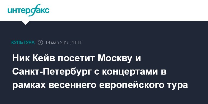 Ник Кейв выступит 25 мая в Москве в Crocus City Hall и 26 мая в Санкт-Петербурге в БКЗ "Октябрьский". Россия станет заключительной страной в европейском туре 2015 года.