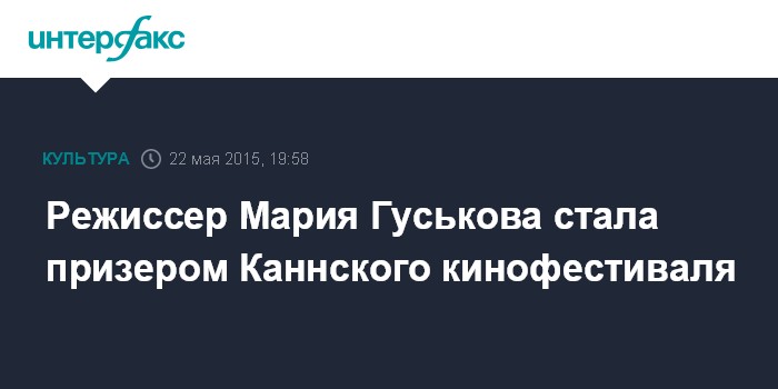 Москва. 22 мая. INTERFAX.RU - Молодой российский режиссер Мария Гуськова стала призером программы Каннского кинофестиваля "Синефондасьон", передает корреспондент "Интерфакса".