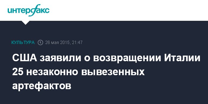 США заявили о возвращении Италии 25 незаконно вывезенных артефактов