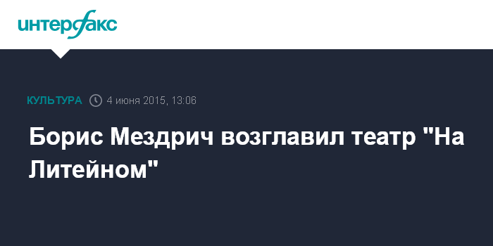 "Сегодня Борис Мездрич познакомился с административной частью коллектива как руководитель", - сообщила "Интерфаксу" в четверг замдиректора театра по финансам Татьяна Платонова.