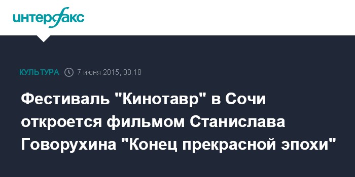 Москва. 7 июня. INTERFAX.RU - 26-й Открытый российский кинофестиваль "Кинотавр" откроется в воскресенье фильмом Станислава Говорухина "Конец прекрасной эпохи".