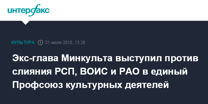 Экс-глава Минкульта выступил против слияния РСП, ВОИС и РАО в единый Профсоюз культурных деятелей