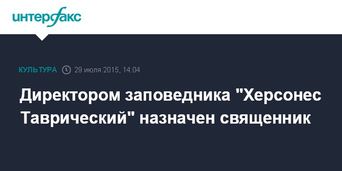 Москва. 29 июля. INTERFAX.RU - Благочинный Севастопольского округа протоиерей Сергий Халюта назначен директором национального заповедника "Херсонес Таврический", сообщил губернатор Севастополя Сергей Меняйло.