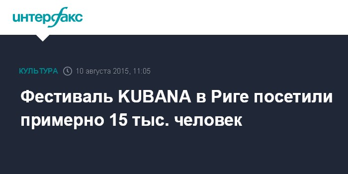 Москва. 10 августа. INTERFAX.RU - Фестиваль KUBANA в Риге посетили примерно 15 тыс. человек, сообщил в фейсбуке мэр латвийской столицы Нил Ушаков. По подсчетам организаторов фестиваля, примерно 5 тыс. посетителей приехали из России.