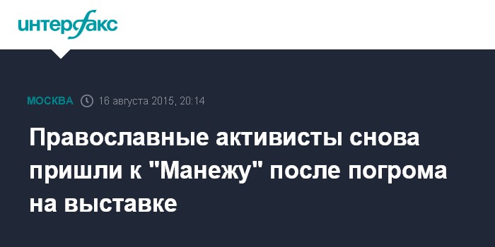 "Сегодня идем в Манеж пресекать оставшееся богохульство. Надеемся полиция исполнит свои обязанности и все ограничится закрытием выставки", - написал перед этим лидер "Божьей воли" Дмитрий Цорионов (Энтео) в своем твиттере.