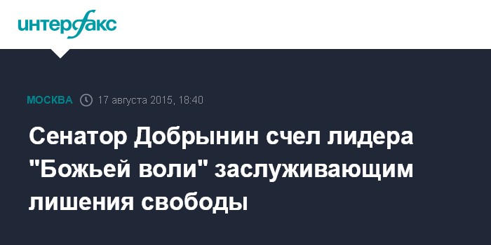 Сенатор Добрынин счел лидера "Божьей воли" заслуживающим лишения свободы
