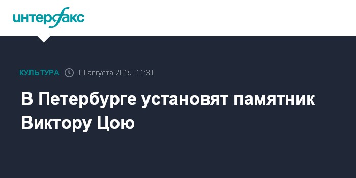 Москва. 19 августа. INTERFAX.RU - Правительство Петербурга подтвердило планы по установке в северной столице памятника музыканту Виктору Цою.