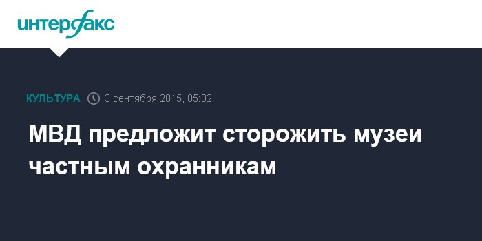 Москва. 3 сентября. INTERFAX.RU - Новый вид частных стражей, которым будет поручено, в том числе, и обеспечение безопасности в музеях, появится в России в следующем году.