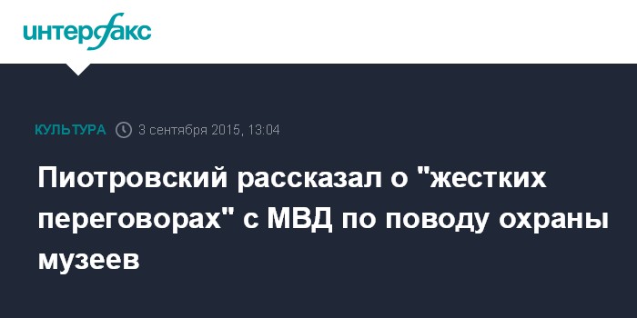 Как сообщалось, Пиотровский заявил, что с ноября этого года полиция прекратит охрану российских музеев в связи с сокращениями в МВД.