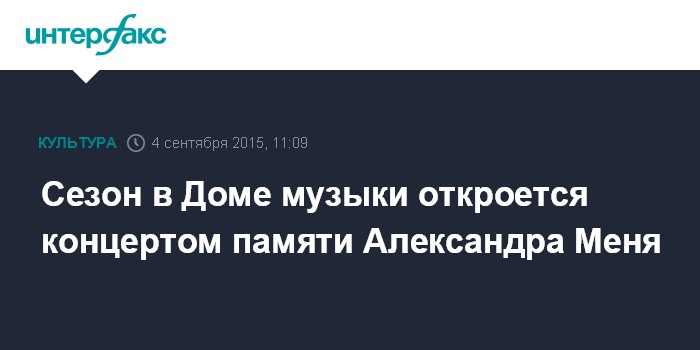 Москва. 4 сентября. INTERFAX.RU - Мемориальным концертом, приуроченным к 25-летию со дня трагической гибели священника Александра Меня, 10 сентября откроется XIII сезон Московского международного дома музыки (ММДМ).